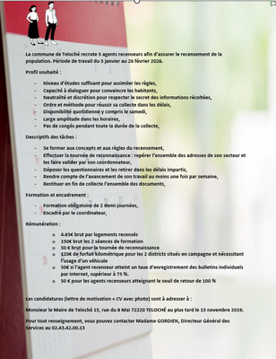 Envoyer une lettre de motivation et CV à rh@mairiedeteloche.fr