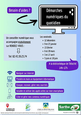La bibliothèque est composée d'une section jeunesse (romans 1er âge, albums, BD, mangas), d'une section ados (romans, BD, mangas), d'une section adultes (romans, romans gros caractères, albums, documentaires, revues, mangas) et aussi une section cd-audio. Les lecteurs ont accès à un choix d'environ 9 000 ouvrages sur place et peuvent avoir accès au catalogue de la bibliothèque départementale de la Sarthe qui compte 240 000 ouvrages, sur simple réservation auprès de la bibliothèque de Teloché. N'hésitez pas à profiter de ce service.